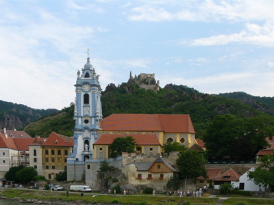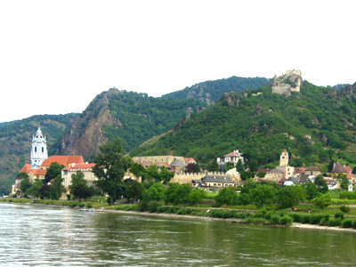Durnstein is located in the heart of Austria's Wachau wine region. The castle ruin on top of the hill is Kuenriger Castle. Richard the Lionheart was imprisoned here in the 12th Century.