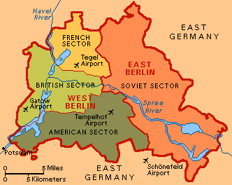 Another stop was in front of the Templehof Airport, used in the Berlin Air Lift. On 20 June 1948 Soviet authorities, claiming technical difficulties, halted all traffic by land and by water into or out of the western-controlled section of Berlin. The only remaining access routes into the city were three 20 mi (32 km)-wide air corridors across the Soviet-occupied zone of Germany. Faced with the choice of abandoning the city or attempting to supply its inhabitants with the necessities of life by air, the Western Powers chose the latter course, and for the next eleven months sustained the city's 2½ million residents in one of the greatest feats in aviation history. Nearby is the Berlin Airlift Memorial which symbolizes the three air corridors used by the British and American pilots.  :