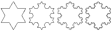 The Koch snowflake fractal has another interesting property common to fractals in that it has a 'fractal dimension'. Lines have dimension 1, squares have dimension 2, and cubes have dimension 3, but the limiting Koch function has dimension approximately 1.2618, a dimension higher than that of a line(1), but less than that of a square(2), since the figure does not fill the plane.