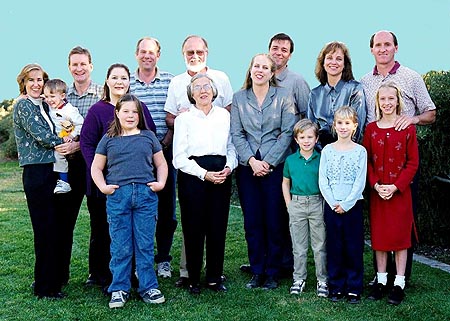 Photo taken about 2005 of Elizabeth, Don, four children, spouses and 5 (of 7) grandchildren.
