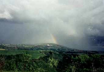 to a rainbow after an afternoon shower.