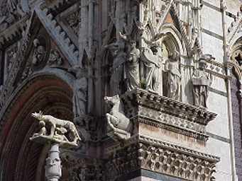 Our tour also took us to the Duomo, whose interior has alternating bands of black and white marble. The 15th-16th century floors are unique. There are 56 marble panels, some are geometric and some portray scenes such as the "Slaughter of the Innocents".