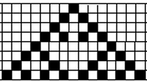 The simplest cellular automaton is the one-dimensional form, which is merely a linear set of cells in one of two states. There is also a set of rules to show how the next generation of the automaton appears. We will indicate the states by drawing them as black or white. To show how they "grow" we will draw successive generations of the states of the automaton directly underneath one another. For example, if the rule is that a cell "dies" if both of its neighbors are dead or if both are alive. A cell will be alive in the next generation if one of its two neighbors is alive and one is dead. If we begin with one "live" cell and apply the rule suggested, we have the following 8 generations.