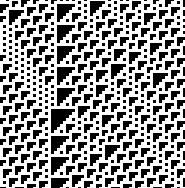 Slightly more complicated one-dimensional cellular automata which depend on the states of the two neighbors and the former state of the present cell may yield generations such as the following.